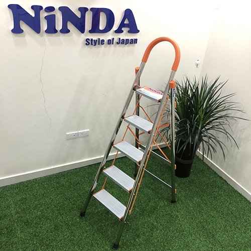Thang ghế gia đình Ninda 5 bậc sử dụng như thang chữ A, leo một phía và tích hợp tay vịn chắc chắn. Thích hợp dùng trong gia đình, nhà kho, siêu thị...